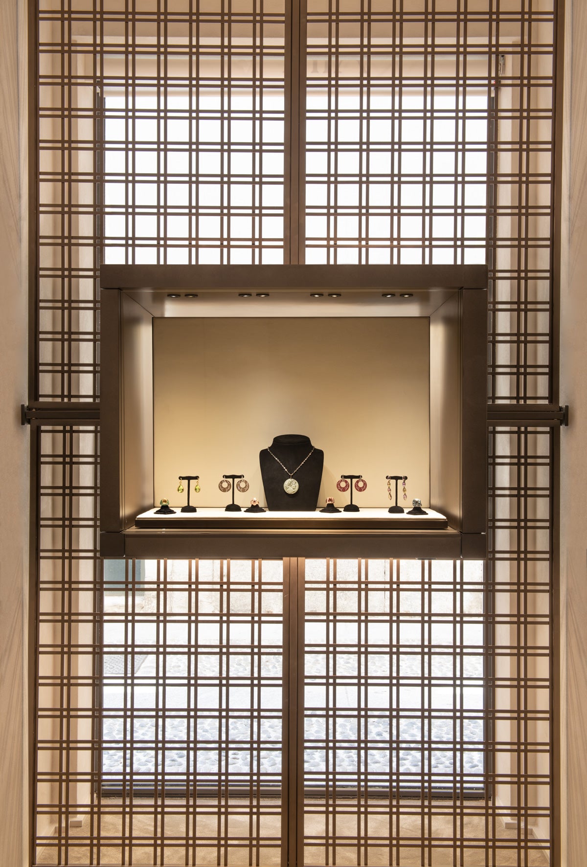 Our Boutique is nestled in the vibrant Brera district, the beating heart of Milan. To convey the subtle sophistication typical of the city, the space mixes architectural elements in a deliberately ‘raw’ aesthetic, juxtaposing oxidized metals with the soft beige of the carpet.
