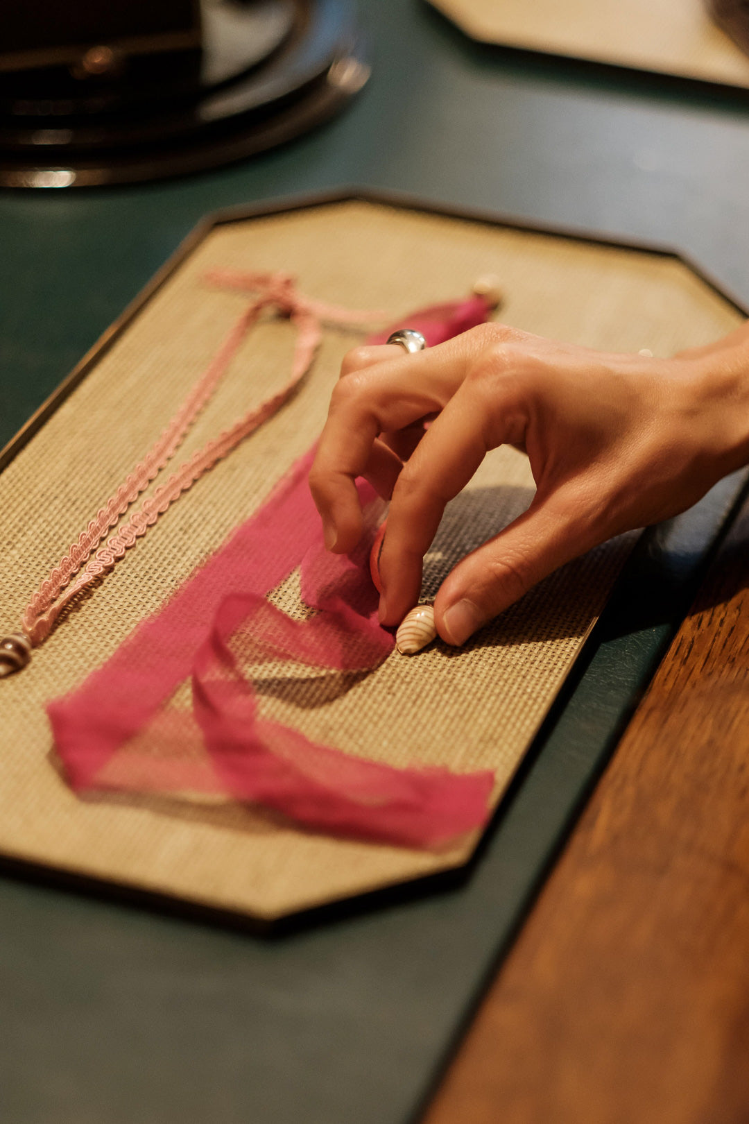Le conchiglie Calypso sono veri e propri tesori creati dalla natura stessa, disponibili in un'infinita varietà di colori, forme e fantasie. Da Villa, queste forme naturali vengono trasformate in gioielli dalle sapienti mani dei nostri artigiani. Ora, dai vita al tuo Woven by the Sea: puoi scegliere la combinazione di tessuti e finiture che preferisci per creare un gioiello Calypso su misura firmato Le Tre Sarte, oppure richiedere un cordoncino personalizzato da abbinare a un pezzo che già possiedi. La boutique Villa ti guiderà in ogni fase del processo.